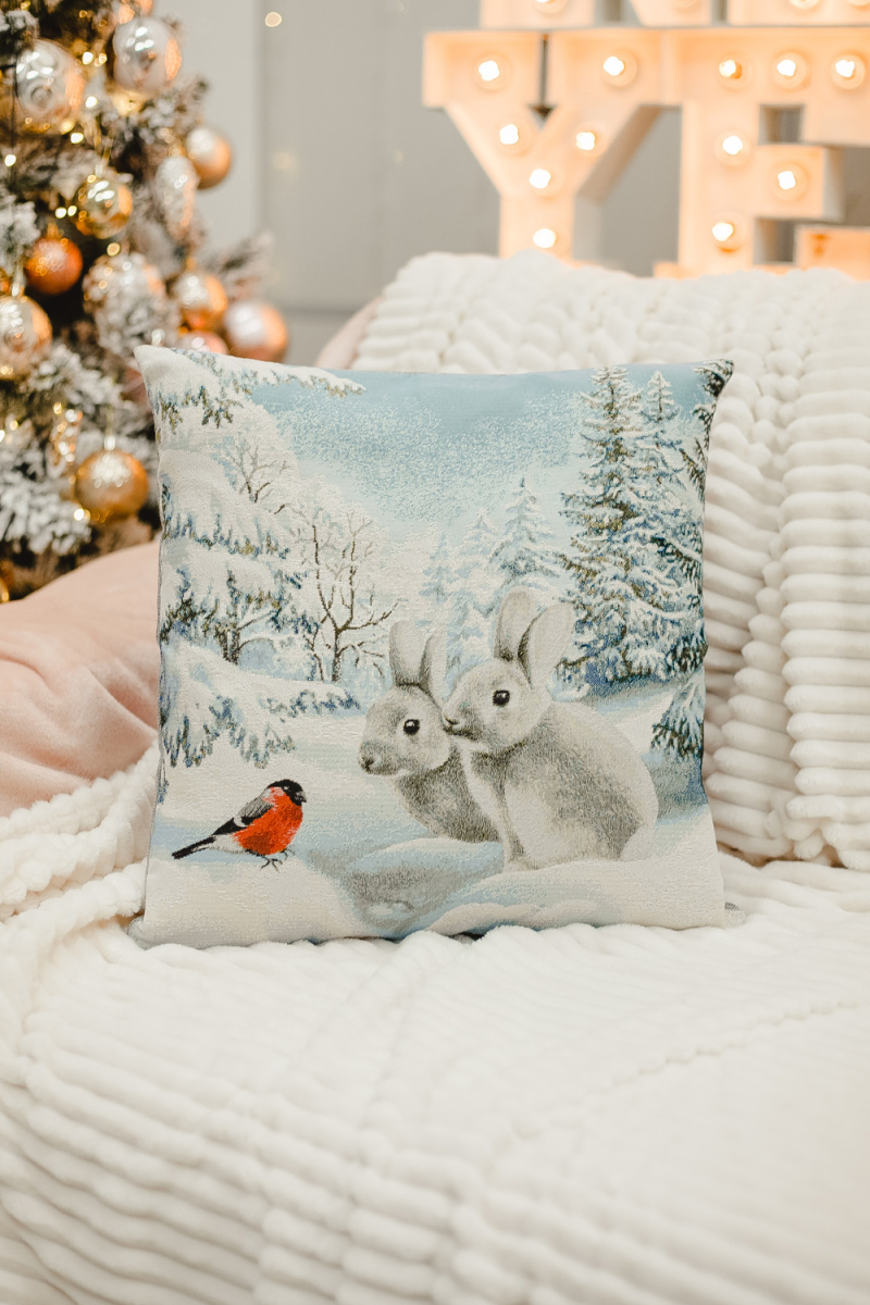 Наволочка 45х45 Снегирь и зайчики